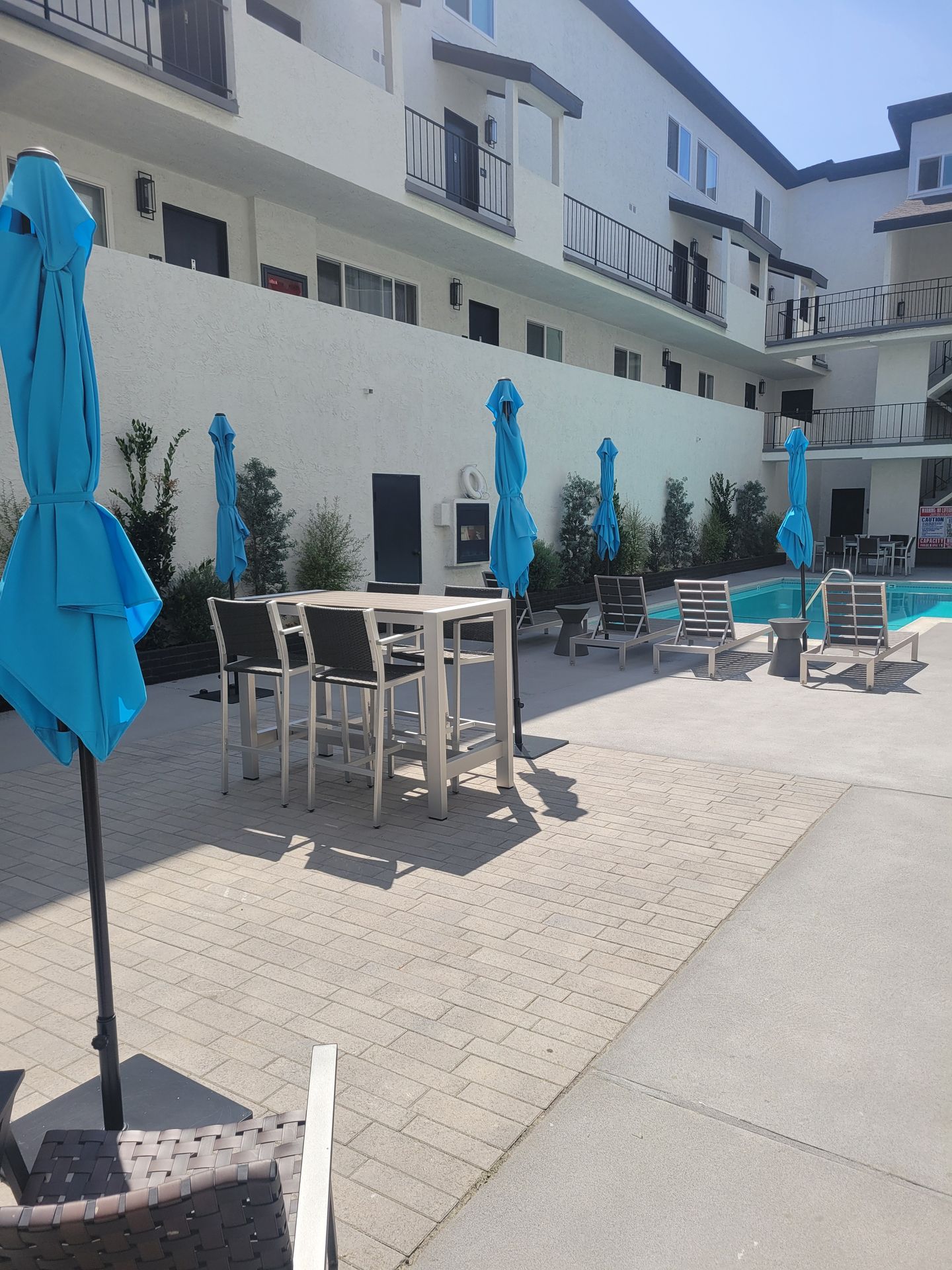 Building has open courtyard architecture. No warren of hallways here! Gated parking, large pool with deep end, laundry room (both coin and smartphone payment) and gated entry.