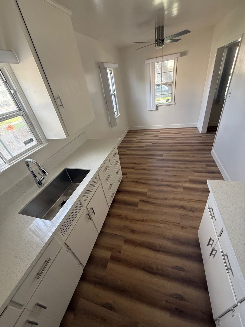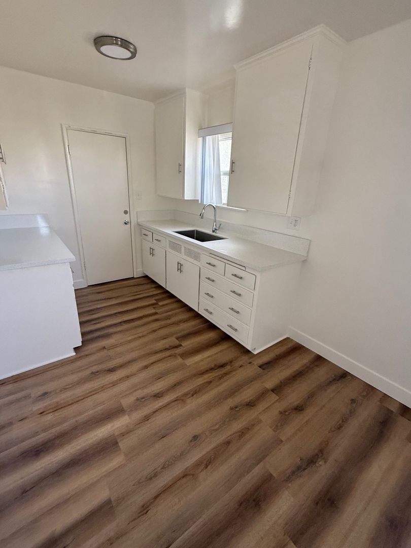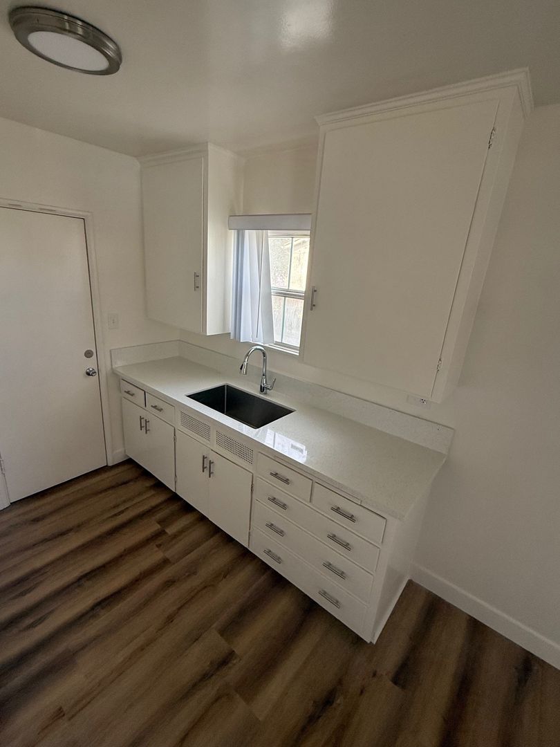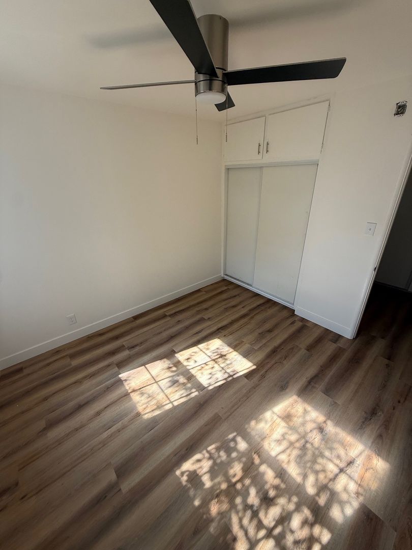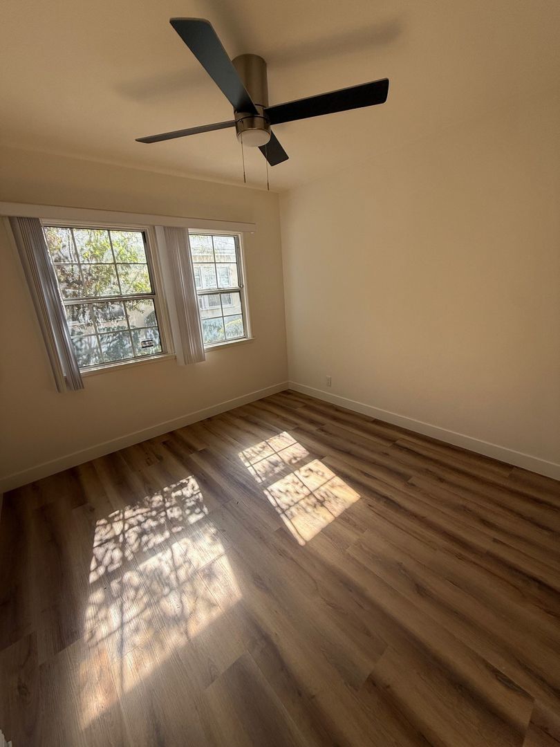 As you step inside this front lower remodeled apartment home, you'll immediately notice the laminate wood flooring throughout. The kitchen boasts quartz countertops, providing ample space for meal preparation and entertaining. Additionally, this unit comes with a stove, vertical blinds, ceiling fan for those warm nights. Providing one parking space, ensuring that parking is never a hassle. Pet free building and non smoking.