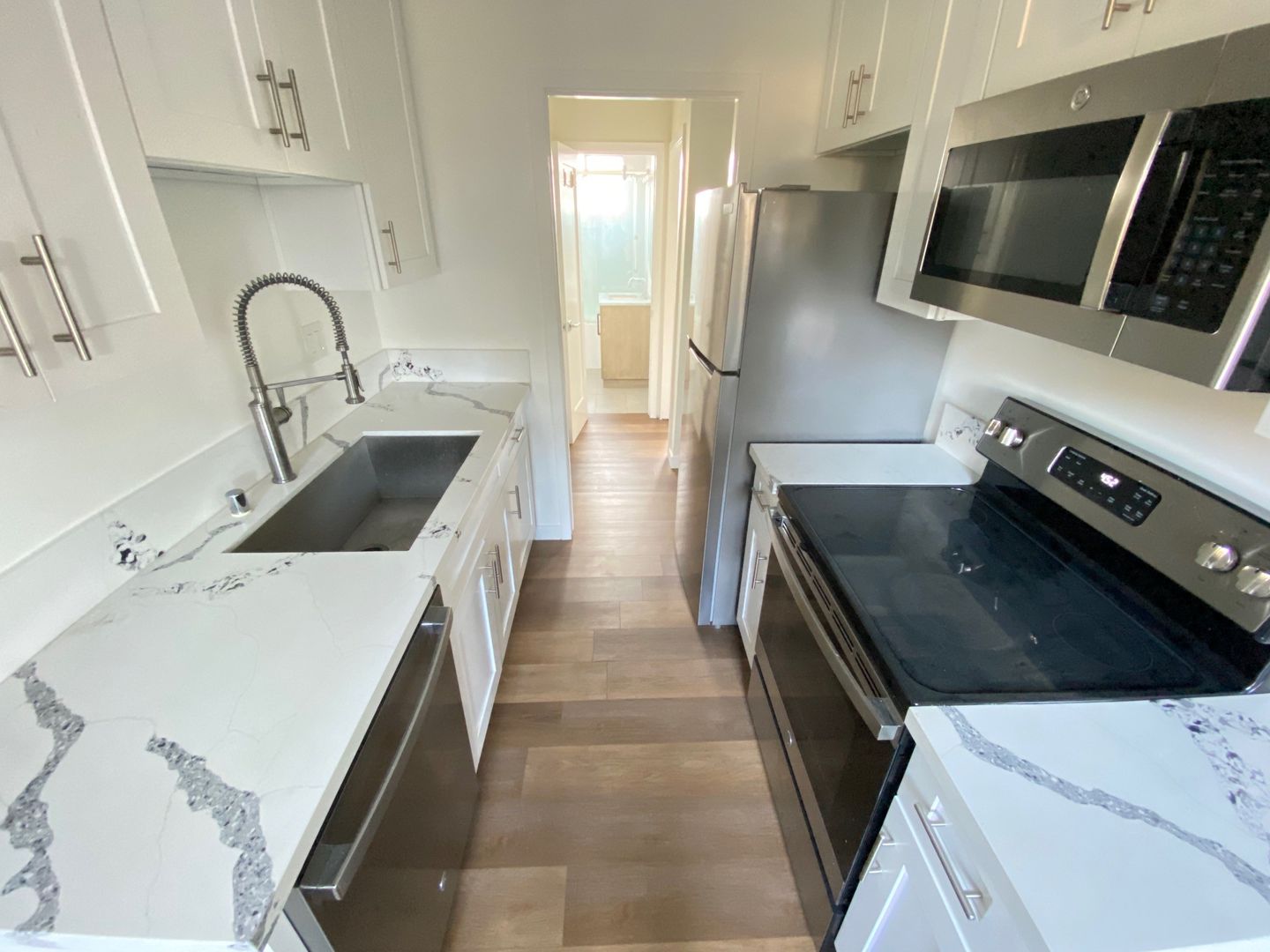 Welcome to your newly remodeled Santa Monica apartment home, just blocks away from the beach! You will love this newly remodeled 1 bedroom, 1 bathroom unit features open floor plan with new vinyl plank flooring throughout, modern newly upgraded bathroom with floor to ceiling shower tile. Completely upgraded kitchen new cabinets and new quartz counters, brand new stainless appliances with built-in microwave. Enjoy the convenience of a gated entry, one parking space, and onsite laundry. Take a dip in the swimming pool or relax on your large patio deck. With plenty of storage space; this pet-friendly apartment is the perfect place to call home in sunny Santa Monica, CA. Don't miss out on this opportunity to live just steps away from the beach contact 661 523 2329 to view this beautifully updated apartment.