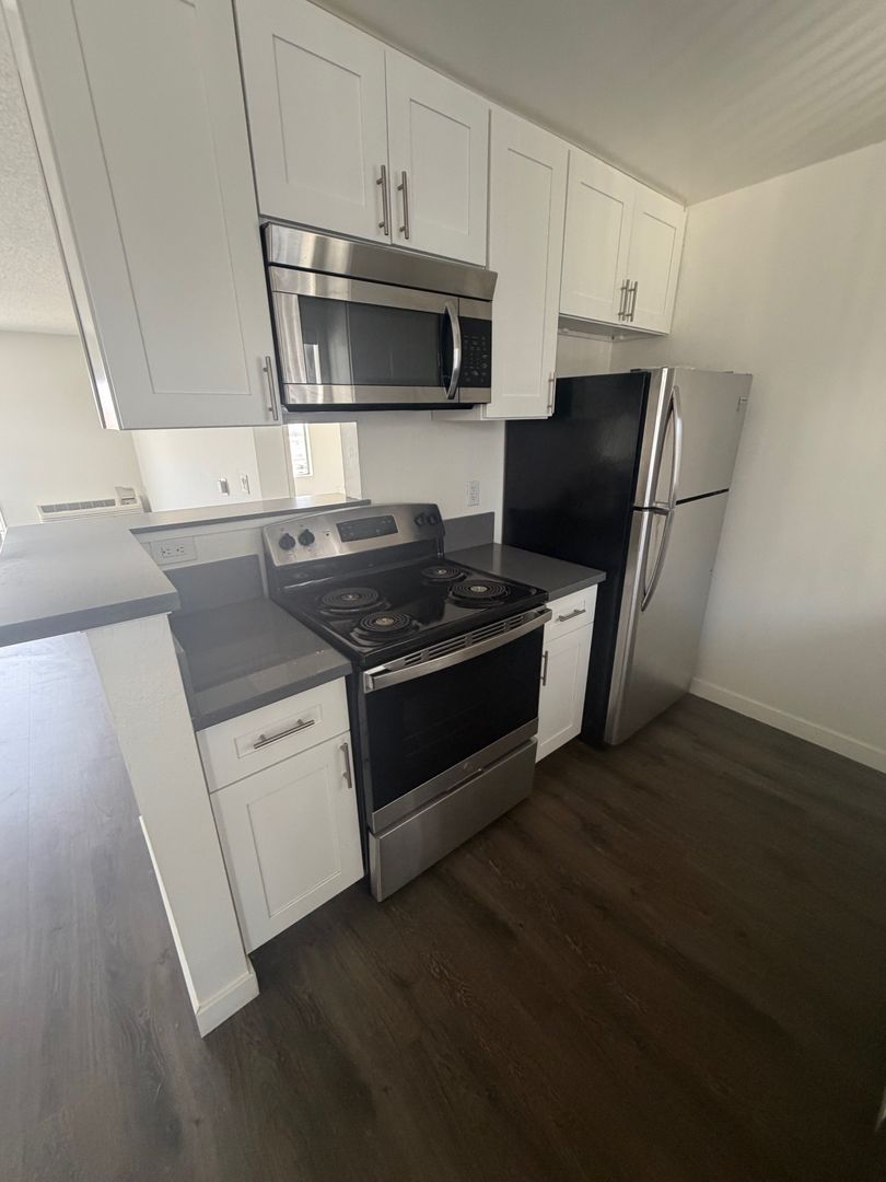 THIS UNIT FEATURES WOOD-LIKE FLOORING THROUGHOUT, NEW CABINETS, NEW QUARTZ COUNTERTOPS, IN THE KITCHEN YOU WILL FIND NEW APPLIANCES: STOVE, AND DISHWASHER.