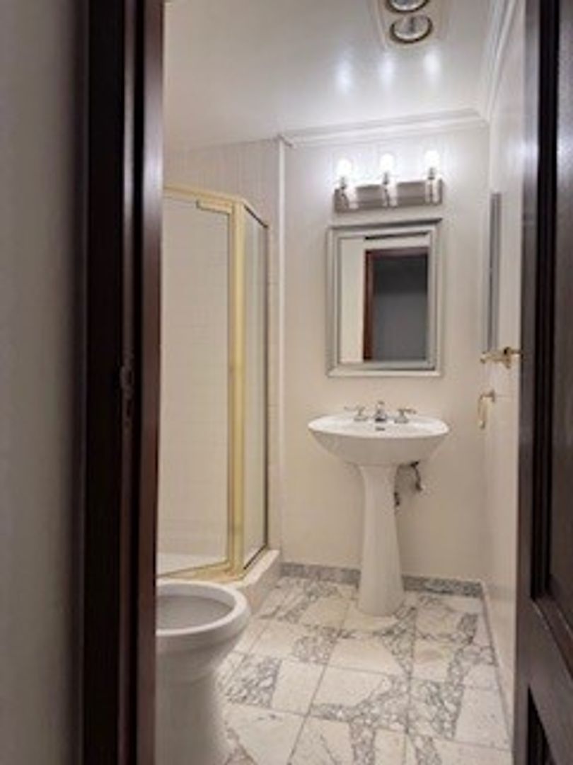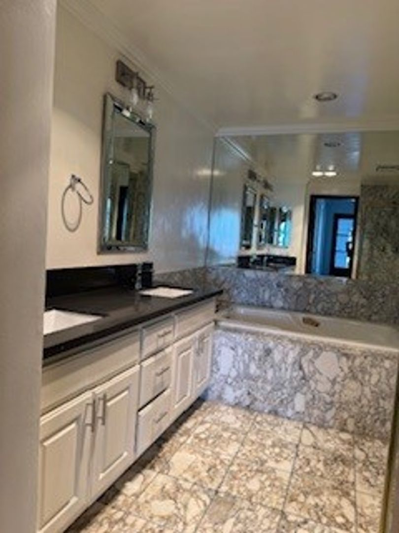 This stunning apartment offers a luxurious living experience with modern amenities and elegant features. Step into the lobby features exquisite marble flooring, creating a grand entrance for residents and guests. The inviting living room has a cozy fireplace and beautiful French doors, perfect for relaxing or entertaining guests. The spacious modern kitchen boasts stone counters with stainless steel appliances, a built-in microwave, oven, dishwasher, refrigerator, and a countertop gas stove, making it a wonderful space for culinary enthusiasts. French doors lead you to a private balcony, where The main bedroom, with a walk-in closet and a spacious main bathroom, features a marble soak-in tub for a tranquil retreat after a long day and offers double-sink stone counters and a separate shower. Convenience is essential included is a laundry room with a washer and dryer and ample storage space. The apartment includes two parking spaces in the gated parking area. The building offers controlled access with an intercom system. The central AC, you can enjoy a comfortable temperature year-round.
