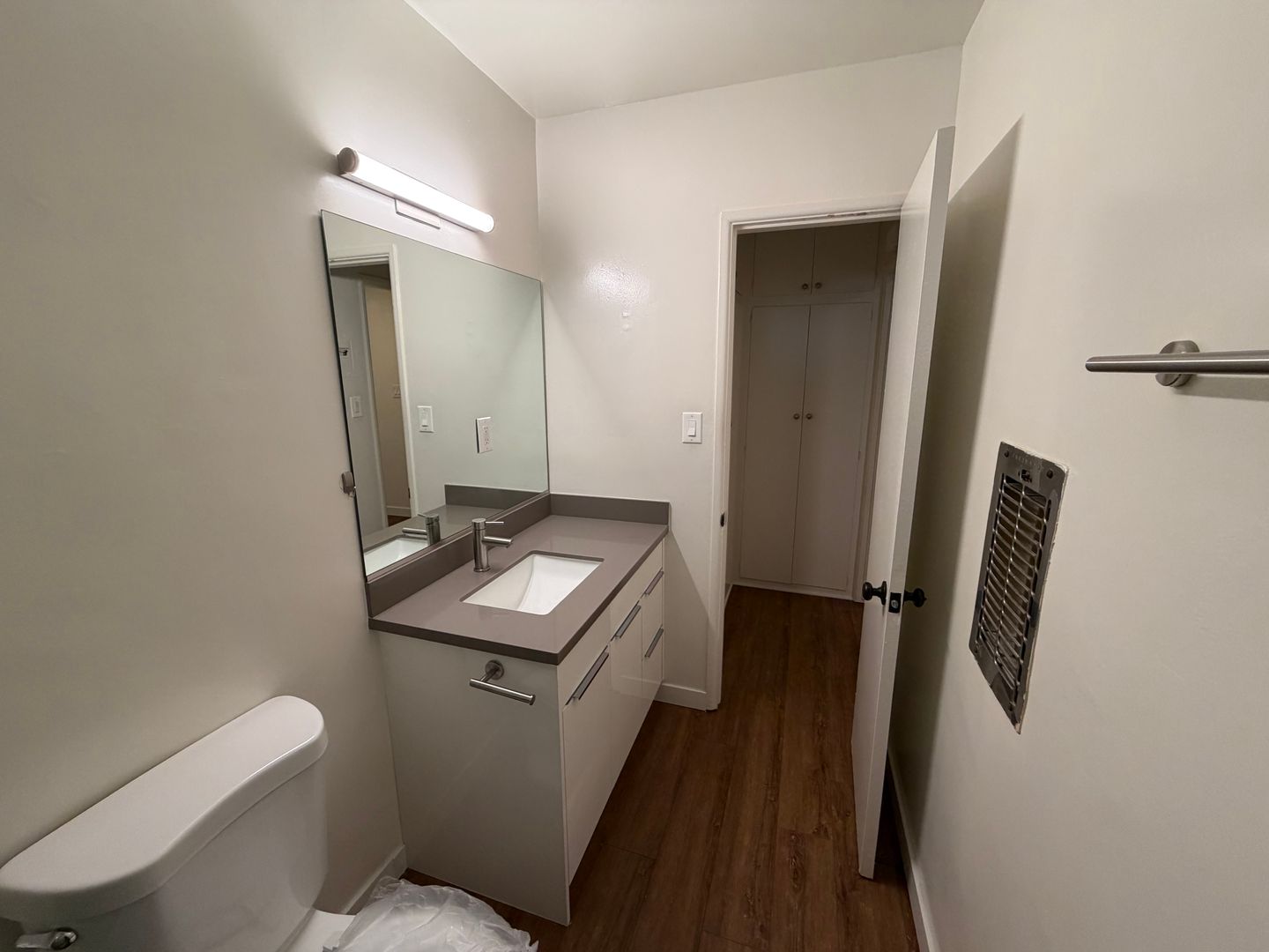 THIS UNIT FEATURES NEW VINYL FLOORS THROUGHOUT, THE KITCHEN COMES EQUIPPED WITH QUARTZ COUNTERS, STAINLESS STEEL APPLIANCES: REFRIGERATOR, STOVE, AND RANGE HOOD.