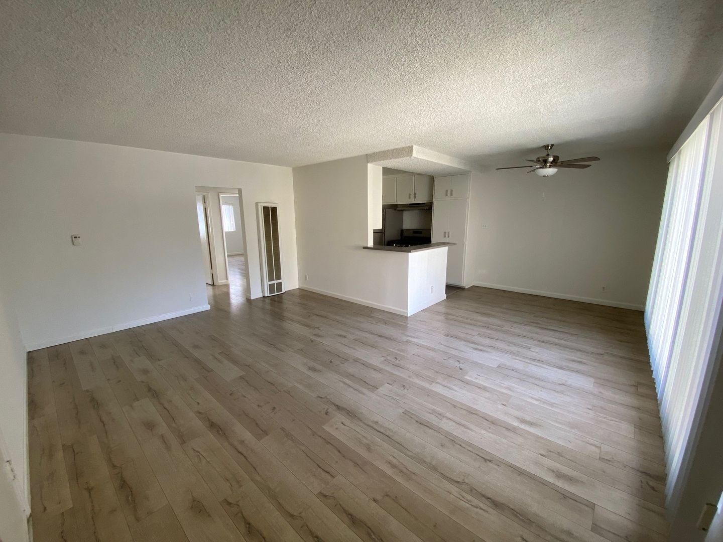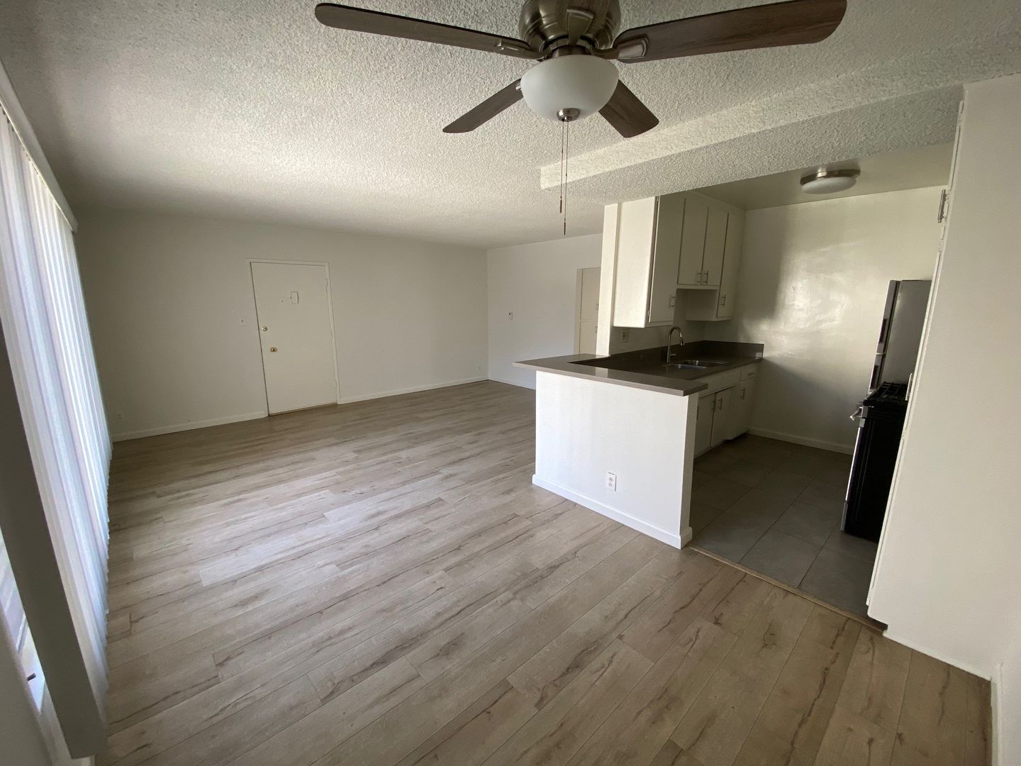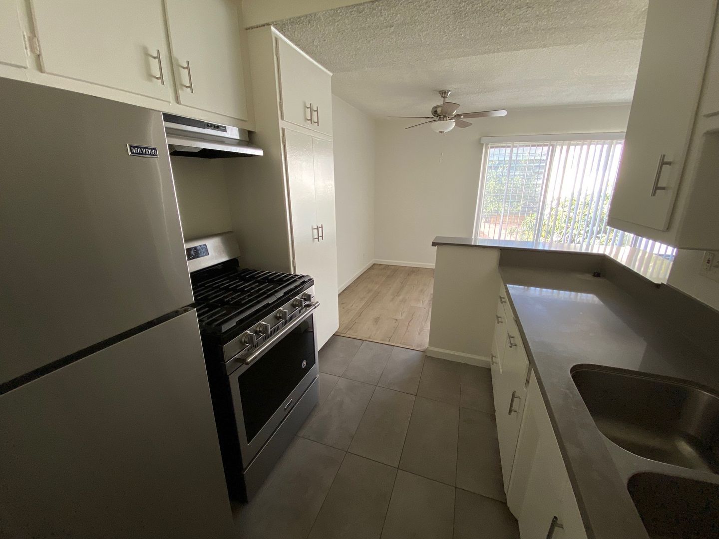 TWO BEDROOM ONE BATH LARGE UNIT WITH UPGRADED WITH BEAUTIFUL KITCHEN QUARTZ COUNTER TOPS. REMODELED BATHROOM WITH NEW FLOORING THROUGHOUT. KITCHEN IS EQUIPPED WITH NEW STAINLESS STOVE AND REFRIGERATOR. KEEP THE UNIT AIR CIRCULATING WITH THE CEILING FAN, VERTICAL BLINDS FOR PRIVACY, ONE PARKING SPACE. THIS IS A NON SMOKING BUILDING WITH LAUNDRY ON PREMISES.