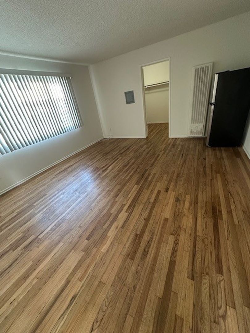 SPACIOUS OPEN FLOOR SPACE BRINGING IN NATURAL LIGHT WITH HARDWOOD FLOORS IN THE LIVING ROOM, TILE FLOORING IN THE BATHROOM, AND A NICE WALK-IN CLOSET. THE KITCHEN COMES WITH A REFRIGERATOR, VERTICAL BLINDS ON EVERY WINDOW, AND STREET PARKING ONLY.