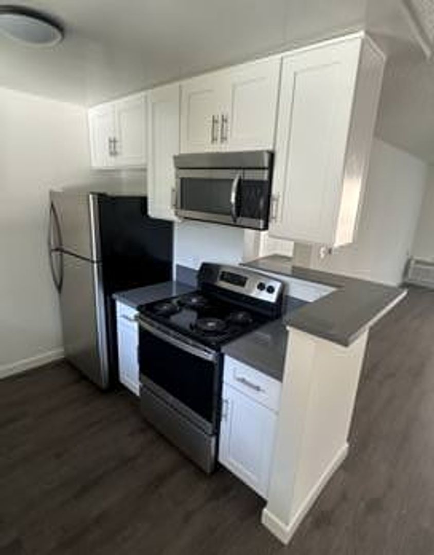 Welcome to your new home at our upgraded one-bedroom top-floor apartment in the Palms neighborhood of Los Angeles. This modern gated building offers a convenient and comfortable living experience and features wood plank floors—open and bright floor plan. The upgraded kitchen has a stove, built-in microwave, refrigerator, dishwasher, and stone counters. Say goodbye to trips to the laundromat with our convenient onsite laundry facilities located on each floor. It comes with an elevator for easy unit access and an air conditioner; enjoy the fresh air and beautiful views from your own private balcony and views from your bedroom—remodeled bathroom. Rest easy knowing the building is gated, with controlled intercom access for added privacy.