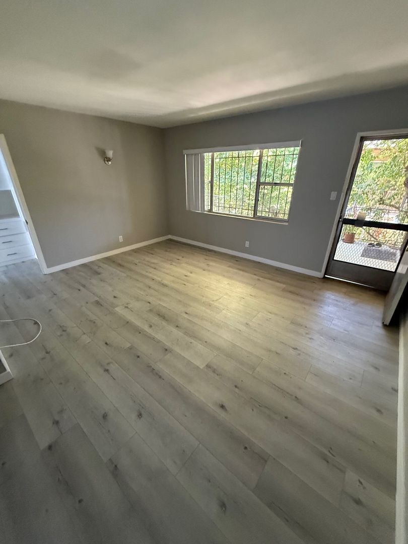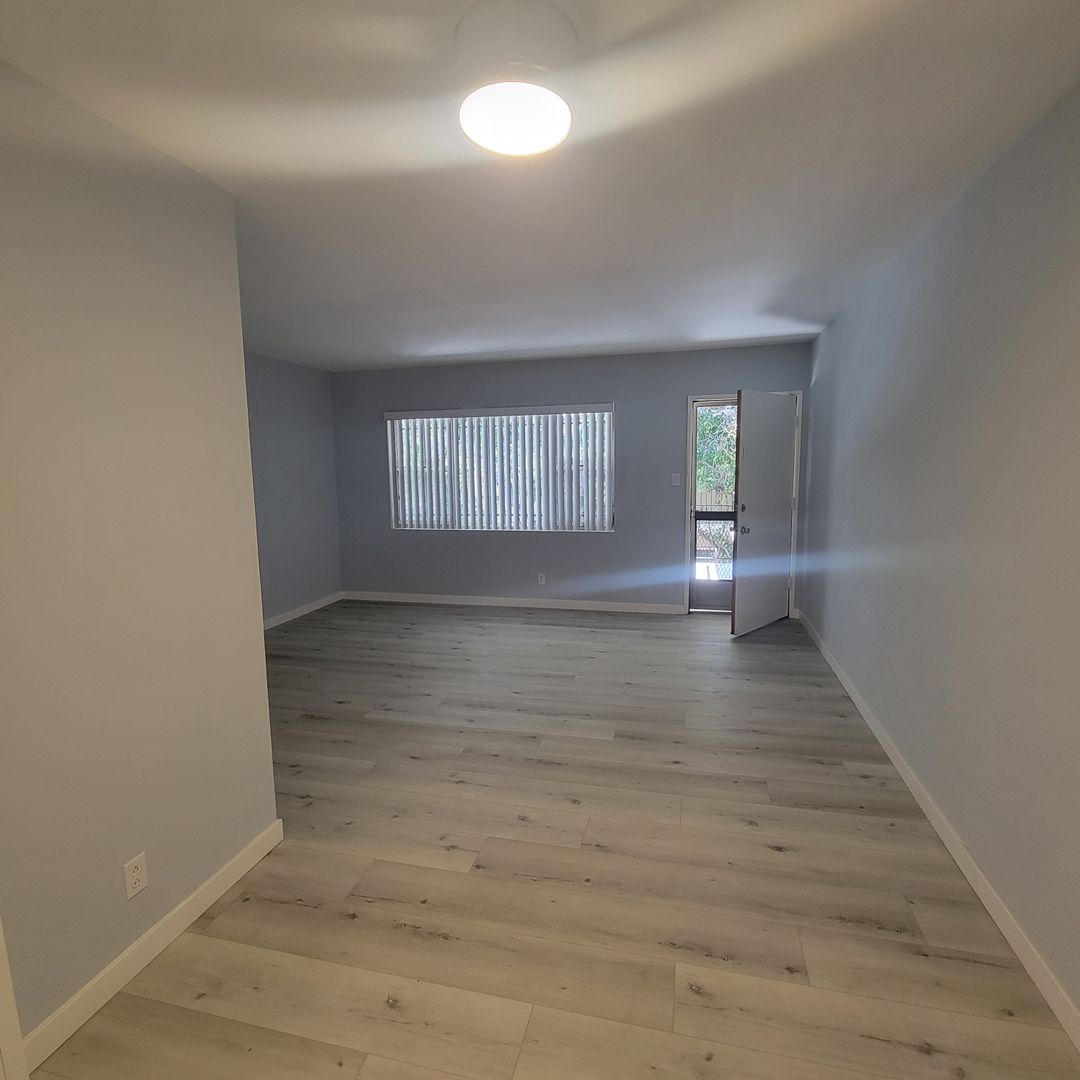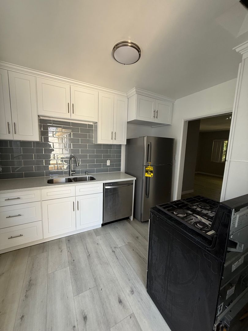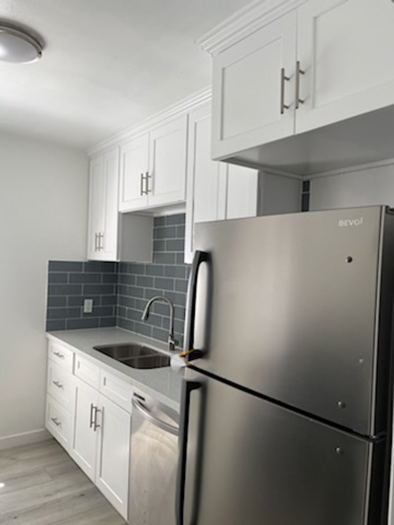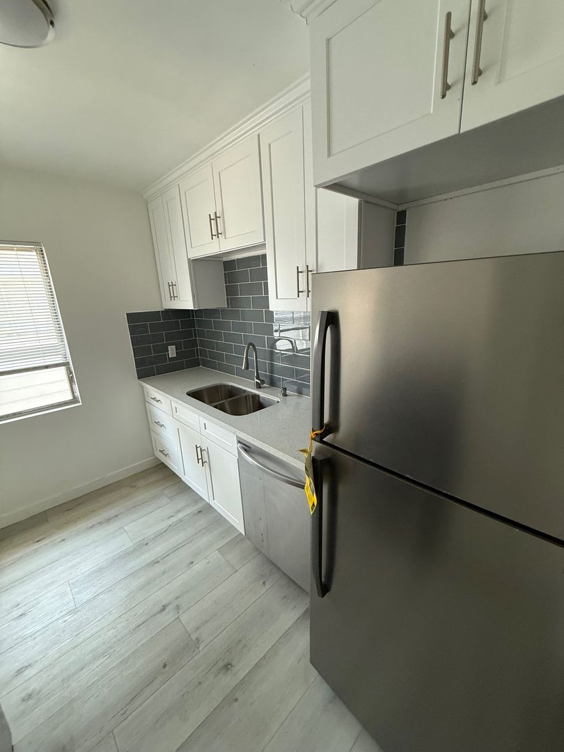 Newly remodeled apartment in the Palms Area, with a prime location near trendy Culver City, Sony Studios, and just around the corner are coffee shops and restaurants. The upper unit a large open living room area features vinyl plank flooring throughout and vertical blinds. a unique front and back door going to the the kitchen features newer cabinets, lovely stone kitchen counters, and stainless steel appliances, Including a Dishwasher, Stove, and Fridge. Upgraded Bathroom features a floor-to-ceiling tiled shower/tub combination with a vanity. Bedroom features plenty of storage space, and air-conditioner unit. Back door and front door access. Comes with parking and shared laundry on site.