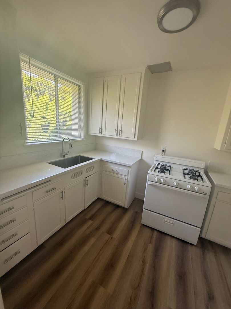 TWO BEDROOM ONE BATH REMODELED UPPER UNIT WITH BRAND NEW VINYL PLANK FLOORING THROUGHOUT NEW QUARTZ COUNTERTOPS CEILING FAN STOVE VERTICAL BLINDS