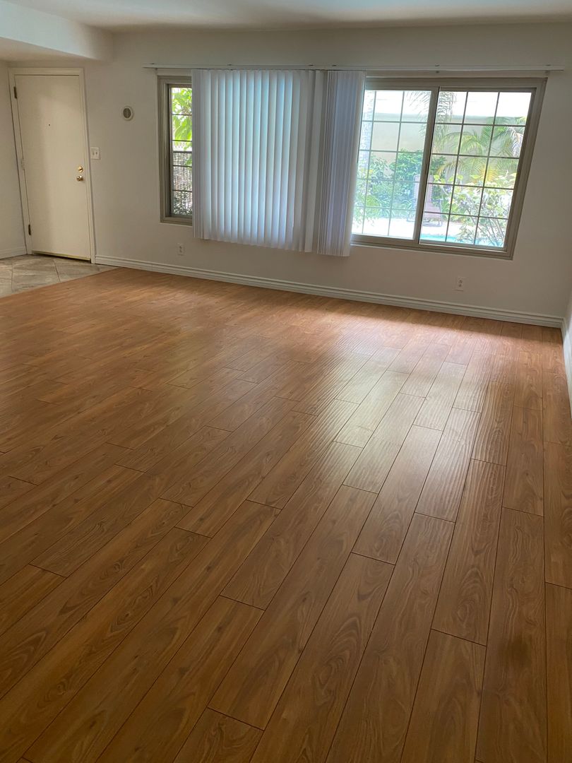 THIS IS A CHARMING LOWER UNIT WITH LAMINATE WOOD FLOORING THROUGHOUT KITCHEN & BATHROOM TILE FLOORS THE KITCHEN COMES WITH A STOVE DISHWASHER MICROWAVE VERTICAL BLINDS