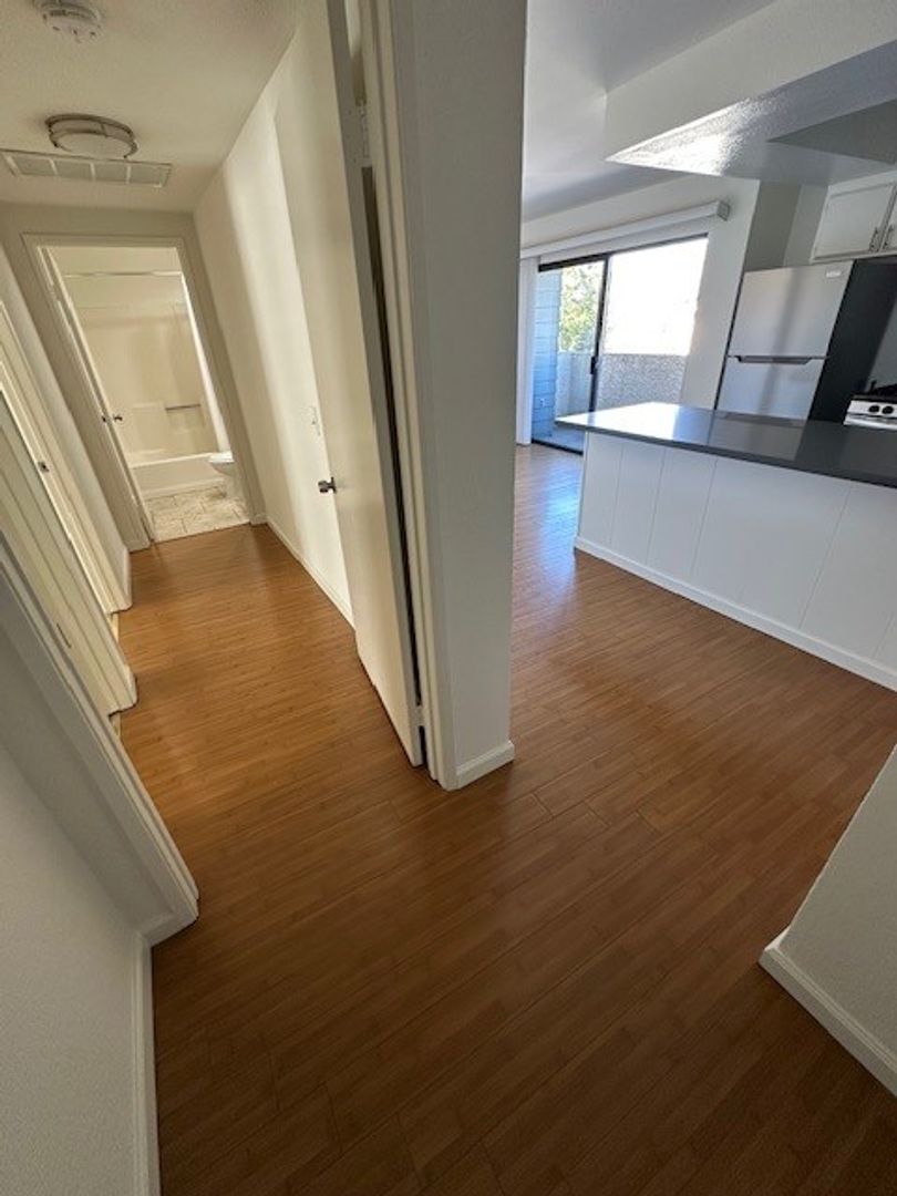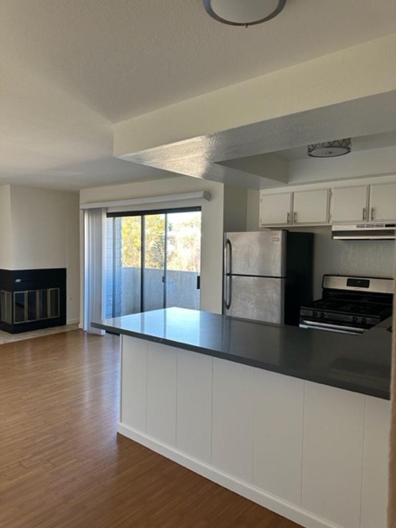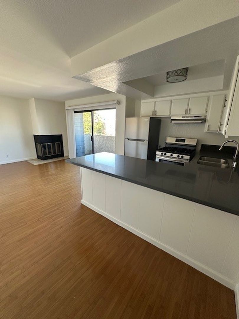 Experience the best of Los Angeles living in this modern, upgraded two-bedroom apartment located in the desirable Palms neighborhood. Prime location near coffee shops, restaurants, trendy Culver City, Sony Studios, and Google offices. This unit offers a spacious, open, and inviting living room with a decorative fireplace. The entire apartment is fitted with unique bamboo floors. The apartment features two upgraded bathroom and a modern kitchen with new stone counters equipped with a stainless steel stove and dishwasher, . Enjoy the convenience of on-site laundry and an Intercom controlled access. The apartment also comes with central AC, verticals, ceiling fan, Step out onto your private balcony. Make this your new home and live in style and comfort.