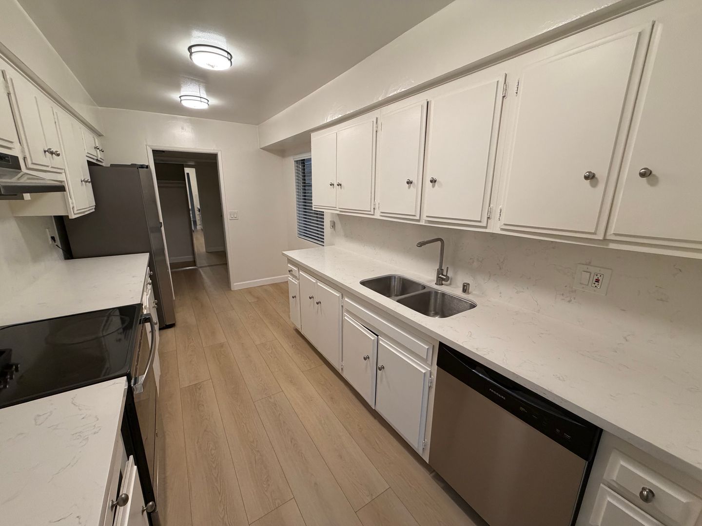 This modern unit features a wonderful modern kitchen that boasts new quartz counters, stainless steel appliances, a full-size double-door fridge, and a stove top. The living room is spacious, open, and inviting with wood-like flooring. A large balcony for enjoying the California sunshine, and convenient laundry facilities on the premises. With 2 parking spaces included, large bedrooms with mirrored closet doors, and upgraded bathrooms with a double-sink vanity. You have to come see this beautiful unit; don't miss out on this opportunity to live in style in one of LA's most desirable neighborhoods. Contact us today to schedule a tour of your new home!