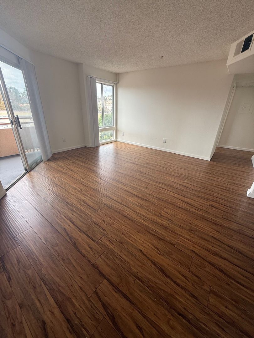 SPACIOUS BRIGHT UNIT THAT FEATURES LAMINATE WOOD FLOORS, CARPET IN BEDROOMS ONE OF THEM WITH BALCONY, THE KITCHEN HAS GRANITE COUNTERTOPS, STOVE, AND REFRIGERATOR, THIS UNIT HAS, CENTRAL A/C, A LOT OF WINDOWS AND THE BALCONY MAKE IT FEEL A LOT BIGGER THAN IT. THIS IS GATED MODERN BUILDING THAT HAS AN ELEVATOR.