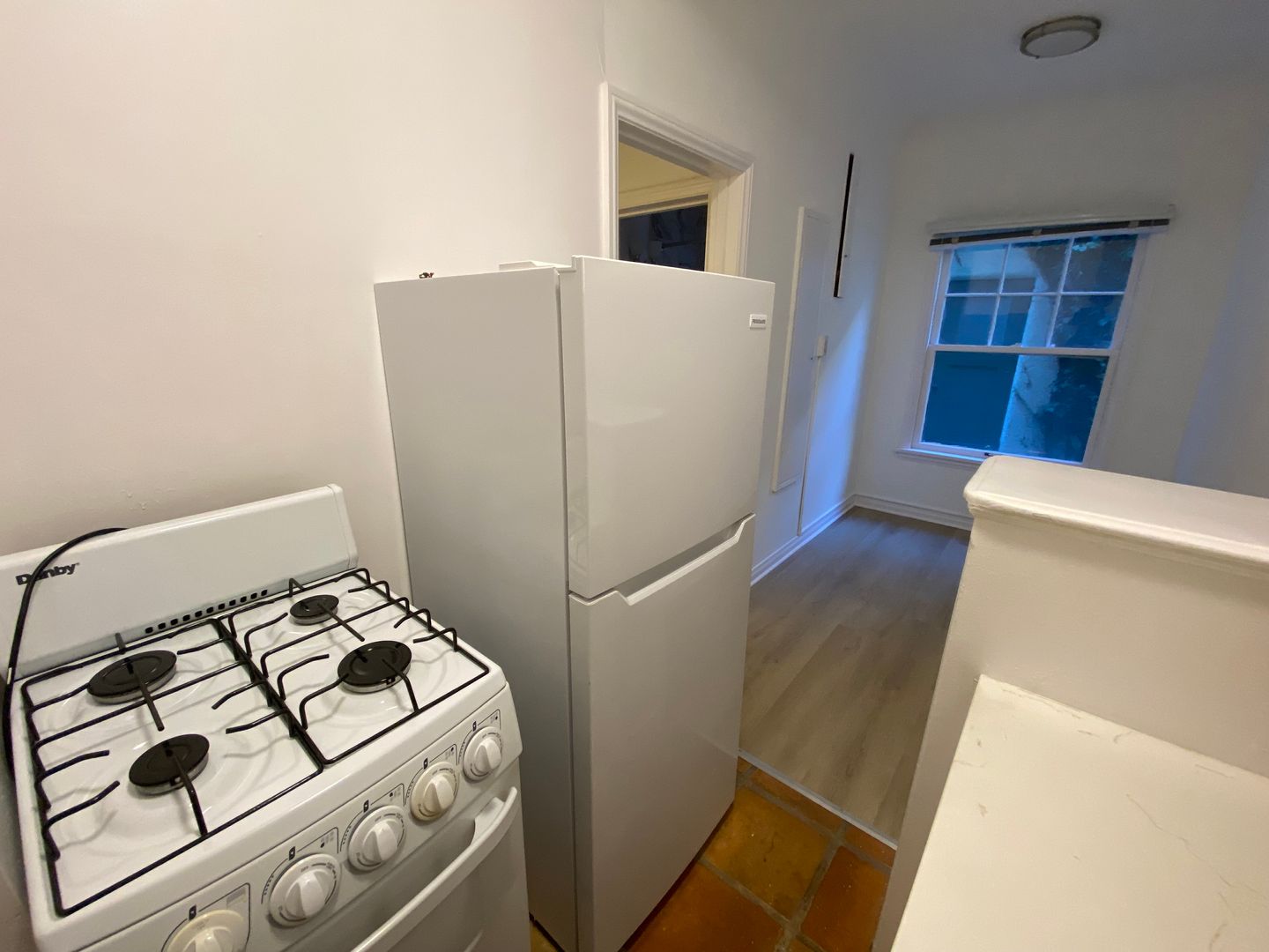 THIS COZY REMODELED UNIT FEATURES NEW FLOORING IN THE LIVING ROOM, SPANISH TILE IN THE KITCHEN AND BATHROOM,