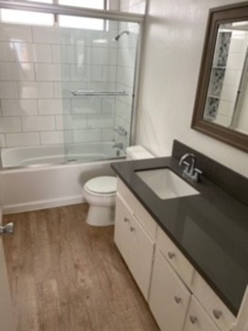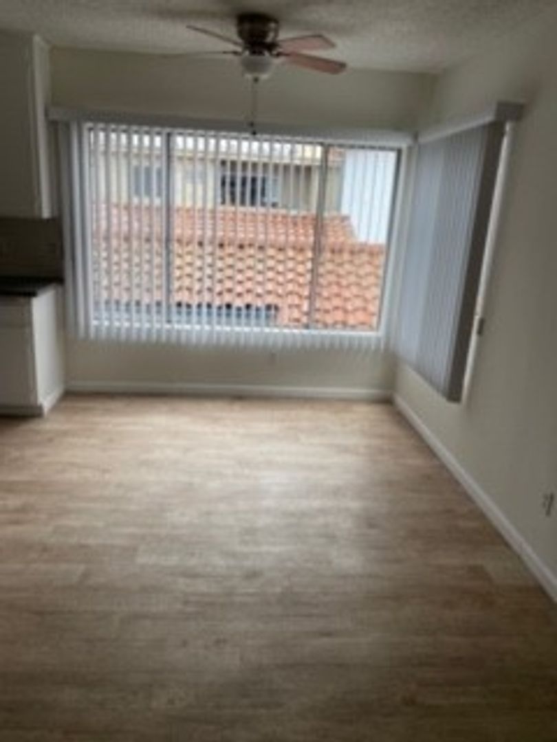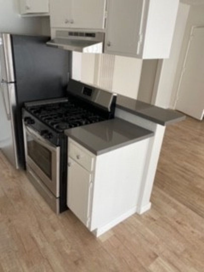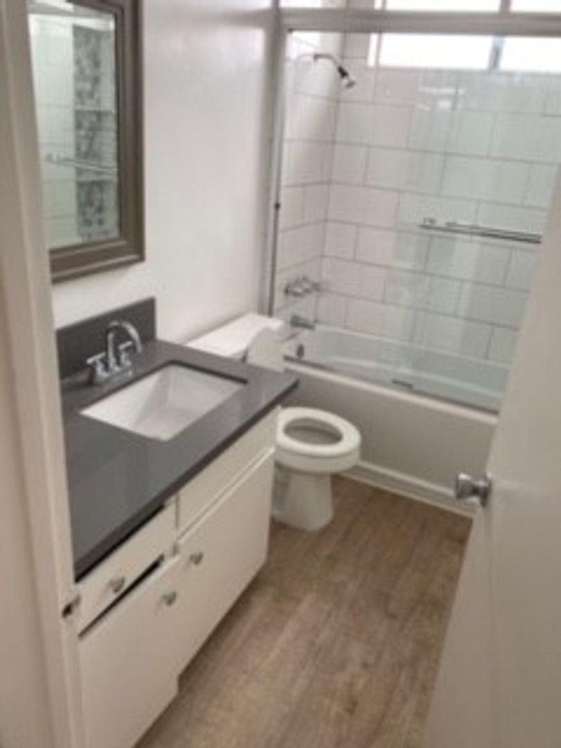 Welcome to the remodeled upper unit in the Palms area, a gem nestled in the heart of Los Angeles, CA. This spacious one-bedroom, one-bathroom apartment is just minutes away from the bustling Culver Center. The open layout of this large upper unit is complemented by laminate wood flooring throughout, adding a touch of elegance to your living space. The kitchen boasts quartz counters and a stainless stove. The bathroom is a modern oasis with a quartz vanity and floor-to-ceiling tiling. The apartment also features a ceiling fan and an onsite laundry for your convenience. Step outside onto your nice-sized balcony for a breath of fresh air or take a short stroll around the corner to discover trendy coffee shops and grocery stores. This prime location, away from the main street, offers the best of city living with a touch of tranquility.