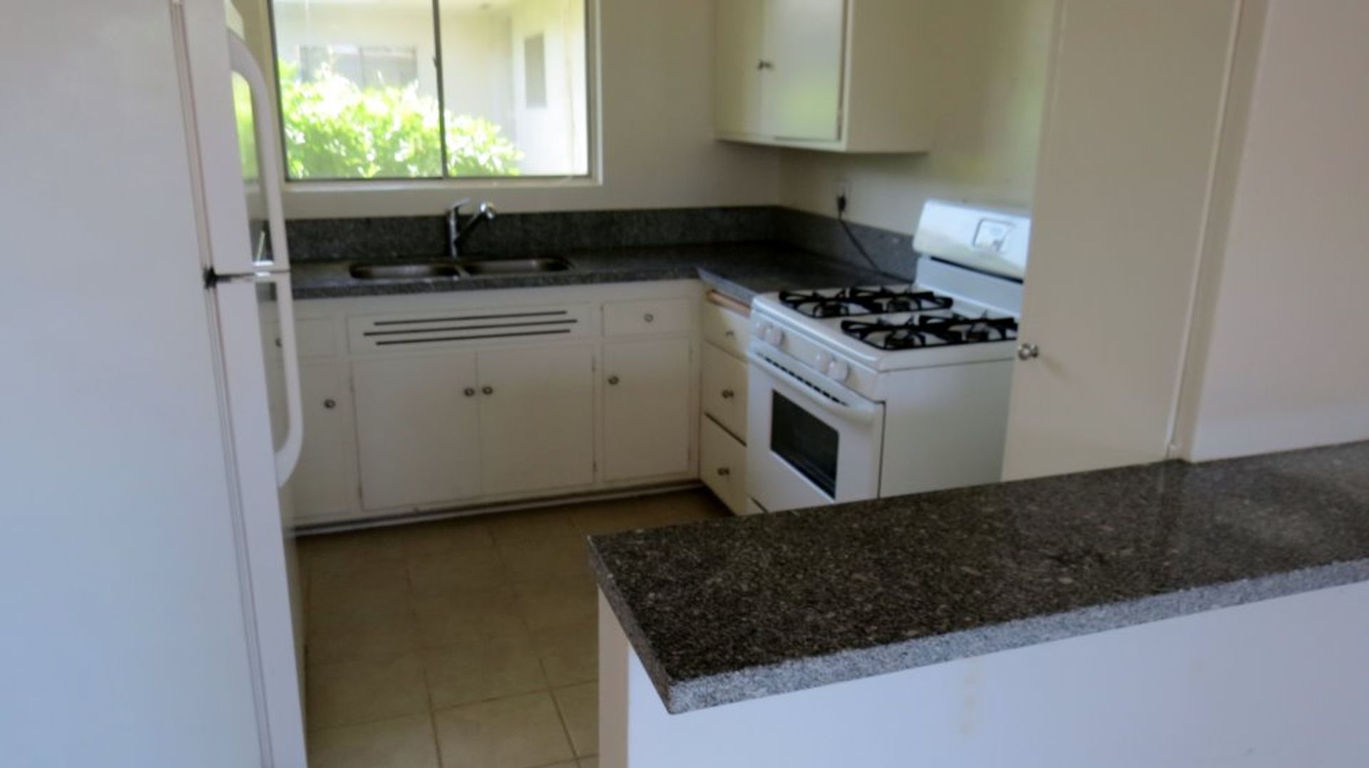 FULLY REMODELED UPPER ONE BED ONE BATH UNIT WITH SOLID OAK FLOORS THROUGHOUT, TILE FLOORS IN BATHRM & KITCHEN, GRAY GRANITE KITCHEN COUNTERS, STAINLESS STEEL KIT SINK, NEW REFRIGERATOR, NEW STOVE, NEW DOUBLE PANED SLIDING PATIO DOOR, NEW TOILET, NEW SHOWER TILES & DOORS, NEW VANITY, LARGE PRIVATE TERRACE WITH PANORAMIC VIEWS, SINGLE CAR CARPORT PARKING SPACE (#5 ON 4430 SIDE), LAUNDRY ON PREMISES, NO PETS, NO SMOKING, CLOSE TO TRANSPORTATION, PUBLIC POOL, CINEMAS, RESTAURANTS, MARKETS.