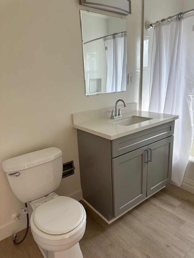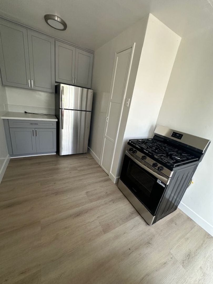 REMODELED BRIGHT UNIT WITH NEW VINYL PLANKS THROUGHOUT KTCHEN HAS NEW MODERN CABINETS WITH QUARTZ COUNTERS NEW STAINLESS REF/STOVE CEILING FAN IN THE BEDROOM REMODELED BATHROOM WINDOW COVERINGS RANDOM PARKING NO LAUNDRY
