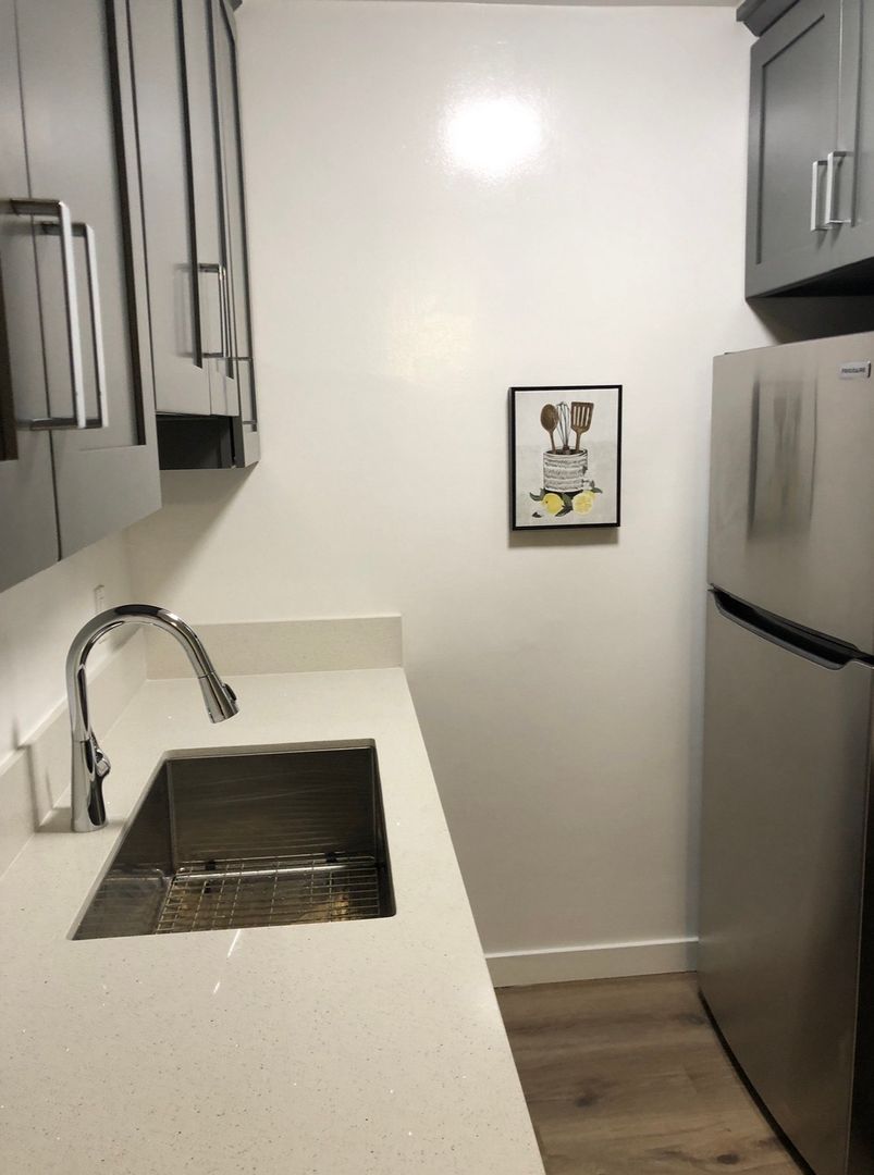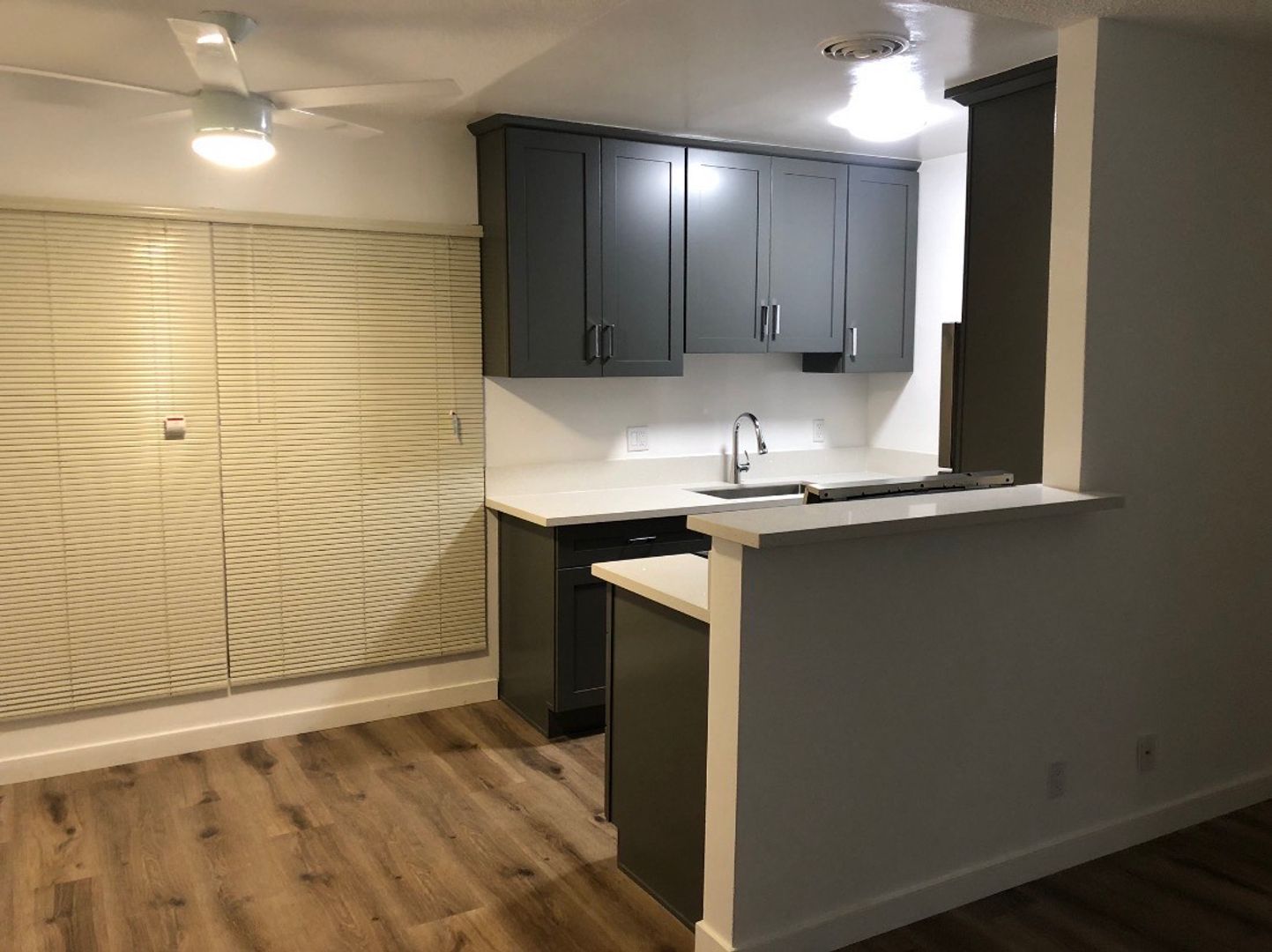 LARGE UNIT OPEN AND INVITING LIVING ROOM AREA WITH WINDOWS BRINGING IN NATURAL LIGHT MAR VISTA; OPEN FLOOR PLAN WITH AN UPGRADED MODERN KITCHEN, NEW CABINETS WITH QUARTZ COUNTERS, WOOD-LIKE FLOORS THROUGHOUT, NEWLY UPGRADED BATHROOM. FLOOR-TO-CEILING SHOWER TILE; THE KITCHEN HAS STAINLESS APPLIANCES, CEILING FAN, WINDOW COVERING, PLENTY OF STORAGE; LAUNDRY ON SITE, 1 PARKING SPACE.
