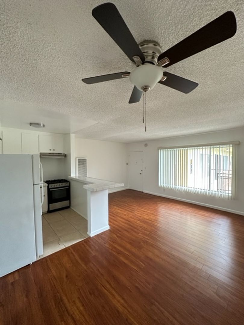 THIS LARGE SPACIOUS UPPER UNIT FEATURES WOODLIKE FLOORS IN THE LIVING SPACES, TILE FLOORING IN THE KITCHEN AND BATHROOM, A FULL KITCHEN WITH STOVE AND REFRIGERATOR, CEILING FAN, VERTICALS, POOL, PARKING, LAUNDRY PREMISES AND ALL THIS ON A GATED BUILDING.