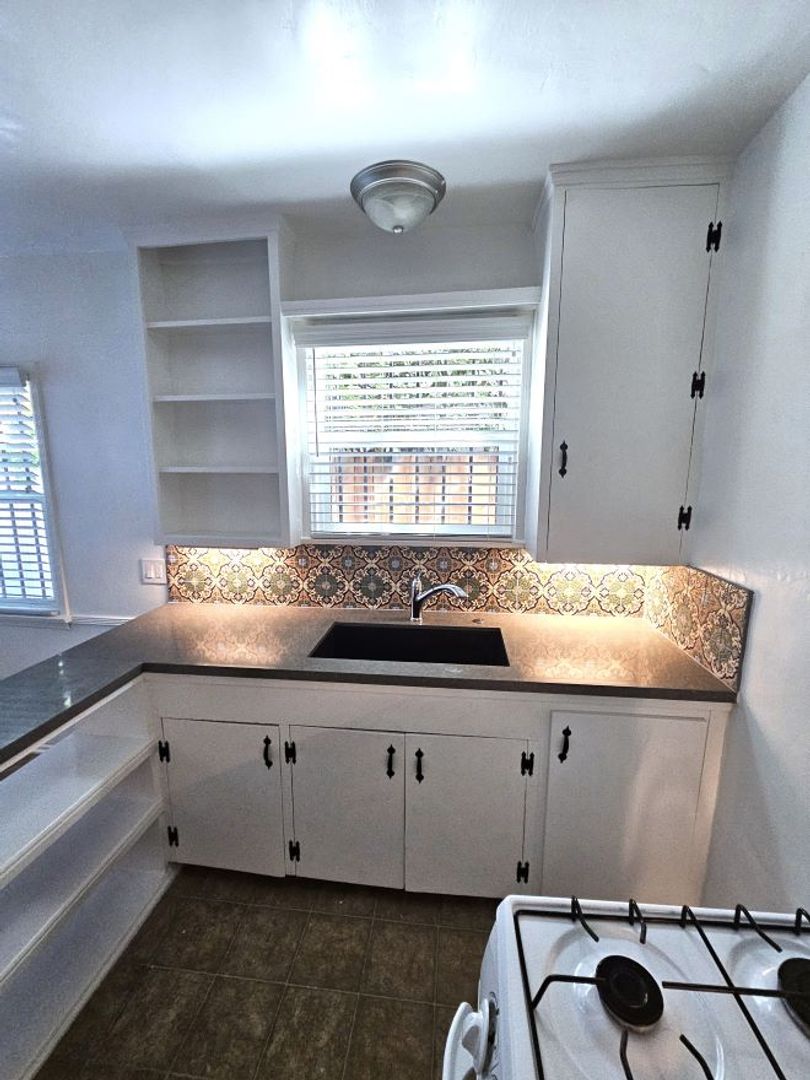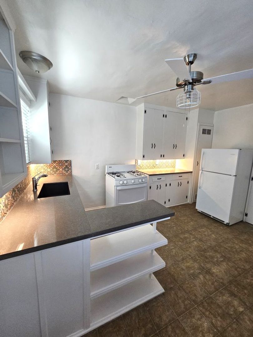 Bottom floor Westwood view home. With 4 exposures, it feels like a house. Eat-in country kitchen featuring new quartz counters and tile backsplash, new refrigerator and new range. New blinds and new remote-controlled AC units. Access to outdoor common area patio space. Very walk-able neighborhood. Convenient location close to Century City, Beverly Hills, U.C.L.A., Westwood Village, Santa Monica and Culver City. Good value for Westwood. Street parking (non-permitted area). Rent includes gas. Tenant pays electric, trash and cable/internet. Pet friendly: $500 pet deposit. 1 dog max at $50 per month pet amenity fee. 2 cats max at $25 per month pet amenity fee.