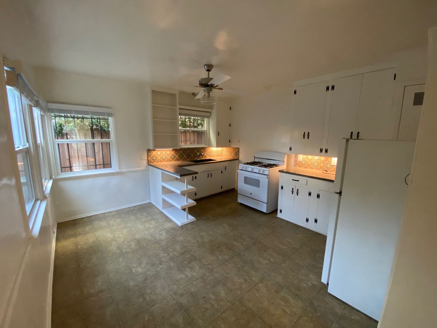 Welcome to 10556 Santa Monica Blvd. This charming 1940’s lower floor Westwood apartment home has many preserved original features and tasteful modern upgrades, nestled into a private 5-unit gated complex in a prime location! Just minutes away from Westwood Village/UCLA, Century City, Beverly Hills, Santa Monica, and Culver City, this centrally-located building provides quick access to all the great surrounding amenities, shops, and restaurants. With exposures on all 4 sides of the building, this unit really feels like a house & provides tons of natural light throughout the day. Additionally, the unit faces the quiet street of Westholme Ave & is elevated high above Santa Monica Blvd, offering a tranquil, walkable neighborhood environment. Out front, just steps away, there is access to a lush outdoor common area patio, complete with seating. The spacious eat-in country kitchen offers plenty of storage and counterspace, equipped with a new fridge, new stove, new quartz countertops, under-cabinet lighting, stylish open shelving, and a colorful custom tile backsplash. The original hardwood floors span across the living room and bedrooms, maintaining the vintage charm of this home. The decorative brick fireplace adds a level of sophistication to the roomy living area. In the bathroom, the walls and shower are clad with beautiful vintage tile, and the two new remote-controlled air conditioning units in the bedrooms provide extra comfort during the warmer summer months. There are new blinds throughout the unit, and street parking (non-permitted area) is readily available. The rent for this unit includes water, so you only have to pay for electricity, gas, trash, and internet/cable. This building is pet friendly, so your animals are welcome! There is a $500 pet deposit, with 1 dog max. ($50/mo) or 2 cats max. ($25/mo). Furthermore, the onsite laundry includes PayRange app compatibility, so you may pay with the app or coins for your convenience. This unit offers unique character and unbeatable value for Westwood, making it an excellent choice for your next home.