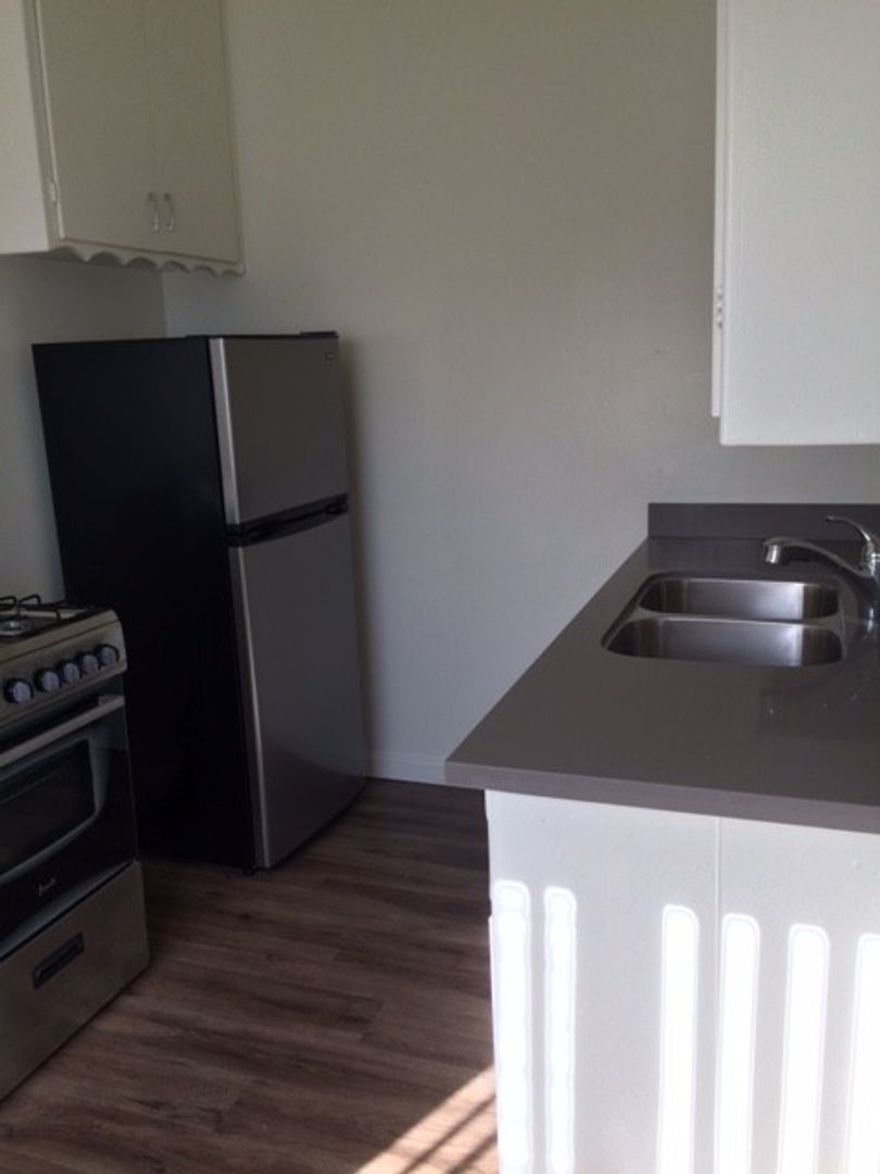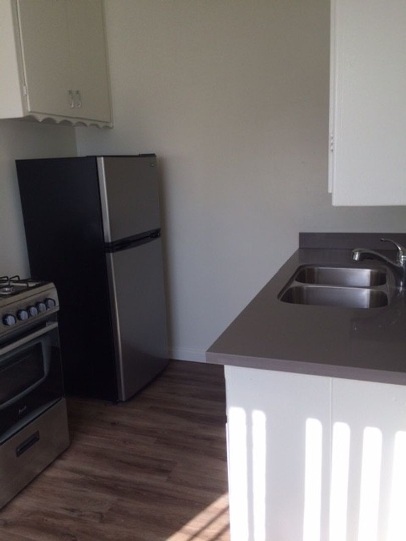 REMODELED BRIGHT UNIT THAT FEATURES FAUX WOOD FLOORS THROUGHOUT, THE KITCHEN HAS QUARTZ COUNTERTOPS WITH STAINLESS APPLIANCES: FRIDGE AND STOVE. THIS UNIT ALSO COMES WITH VERTICAL BLINDS ON EACH WINDOW, LAUNDRY ROOM, STREET PARKING ONLY.