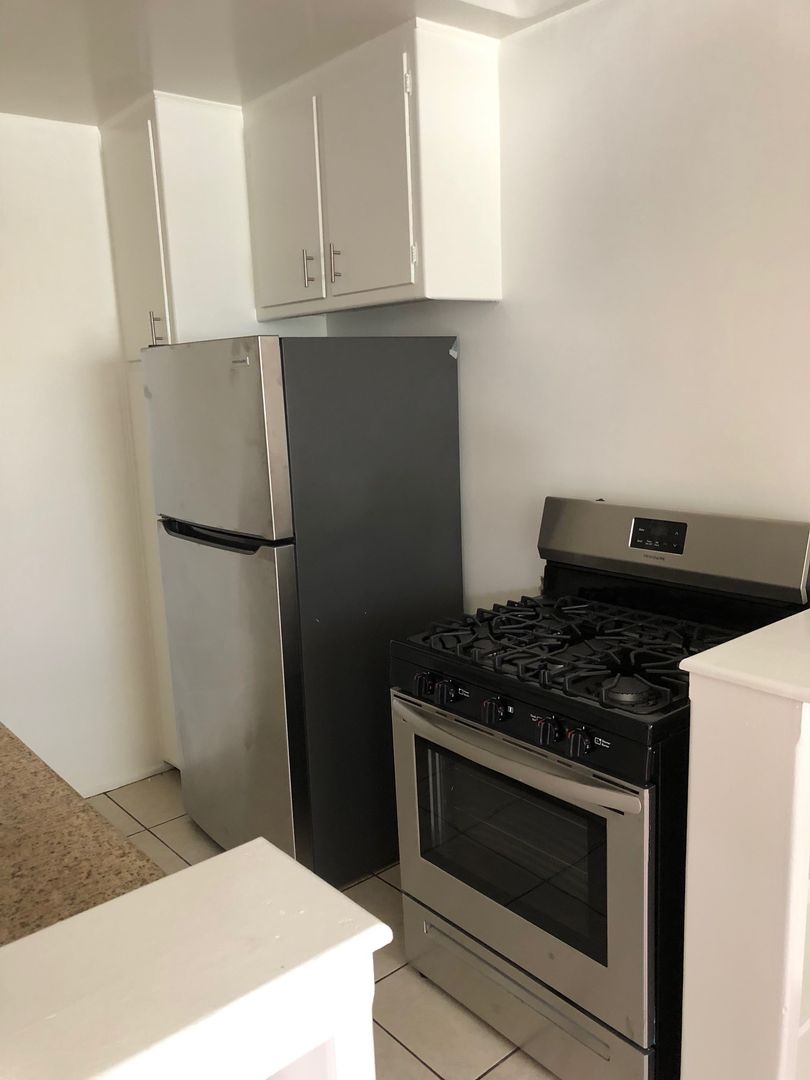 THE KITCHEN COMES EQUIPPED WITH GRANITE COUNTERTOPS, WITH STAINLESS STEEL APPLIANCES: REFRIGERATOR AND STOVE.