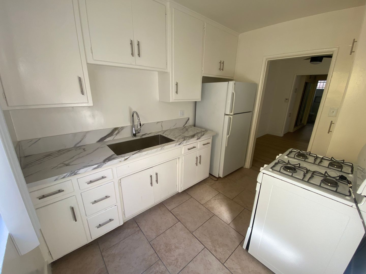 THIS 1 BED + 1BATH LOWER UNIT IN PALMS HAS : remodeled unit with new vinyl planks flooring beautiful new quartz counter kit/bathroom