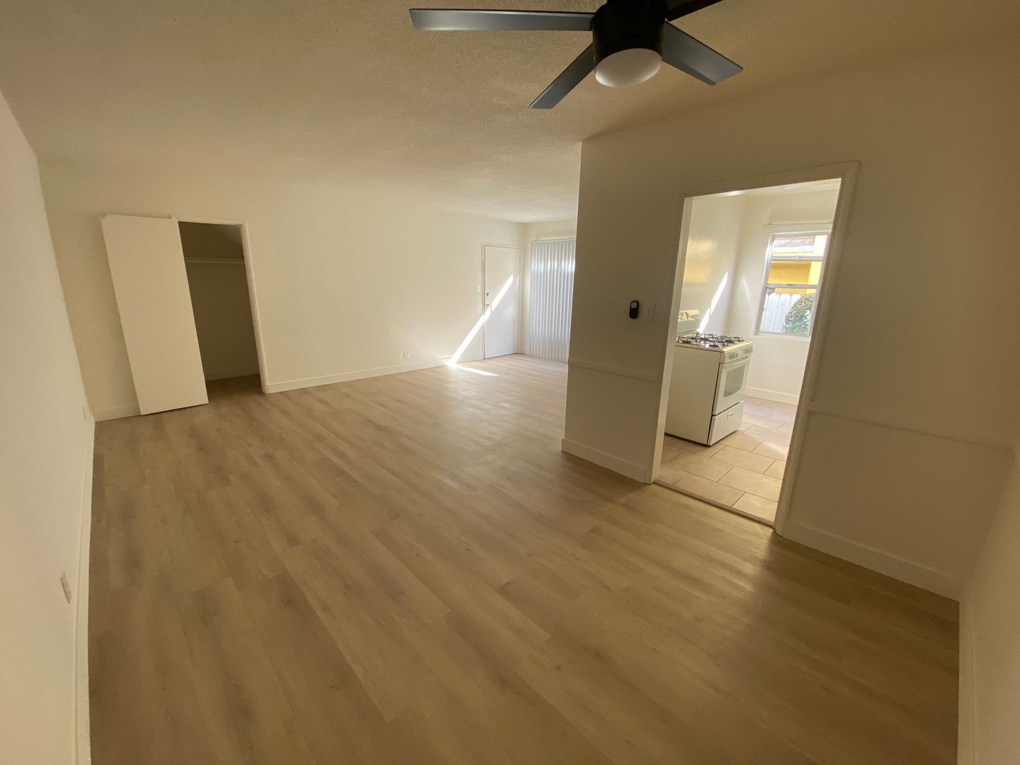 Brand new bathroom fridge stove ceiling fan spacious lot of closet space laundry on site, 1 parking space is included.